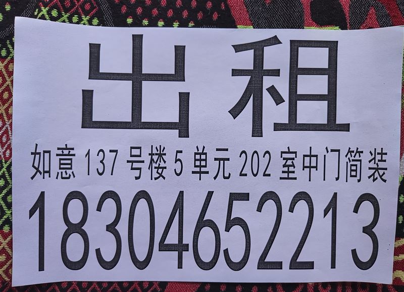 馬場如意家園137號樓5單元202室出租。簡裝。