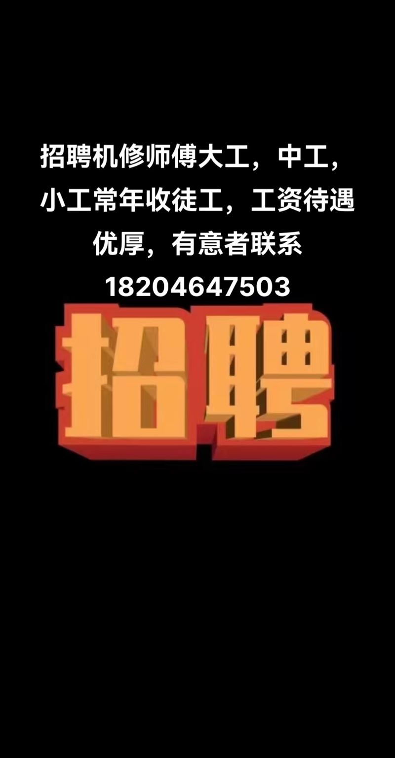 招聘機(jī)修師傅,大工,中工和學(xué)徒工,要求有上進(jìn)心,責(zé)任心供吃供住待遇優(yōu)厚,有意者聯(lián)系