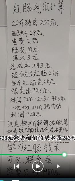 非常賺錢的項目,暴利項目,制作哈爾濱紅腸,20斤肉做出來26斤紅腸能賺大概485元,可以看我的圖片有利潤計算。 想學習聯(lián)系我18724645013微信同號?,F(xiàn)場學習,包教包會,學會為止。沒時間來,也可以遠程學習,等有時間再來現(xiàn)場學習。不管學習幾次都只收一次費用。 學費非常便宜只收1980元。毫無保留都教給你。